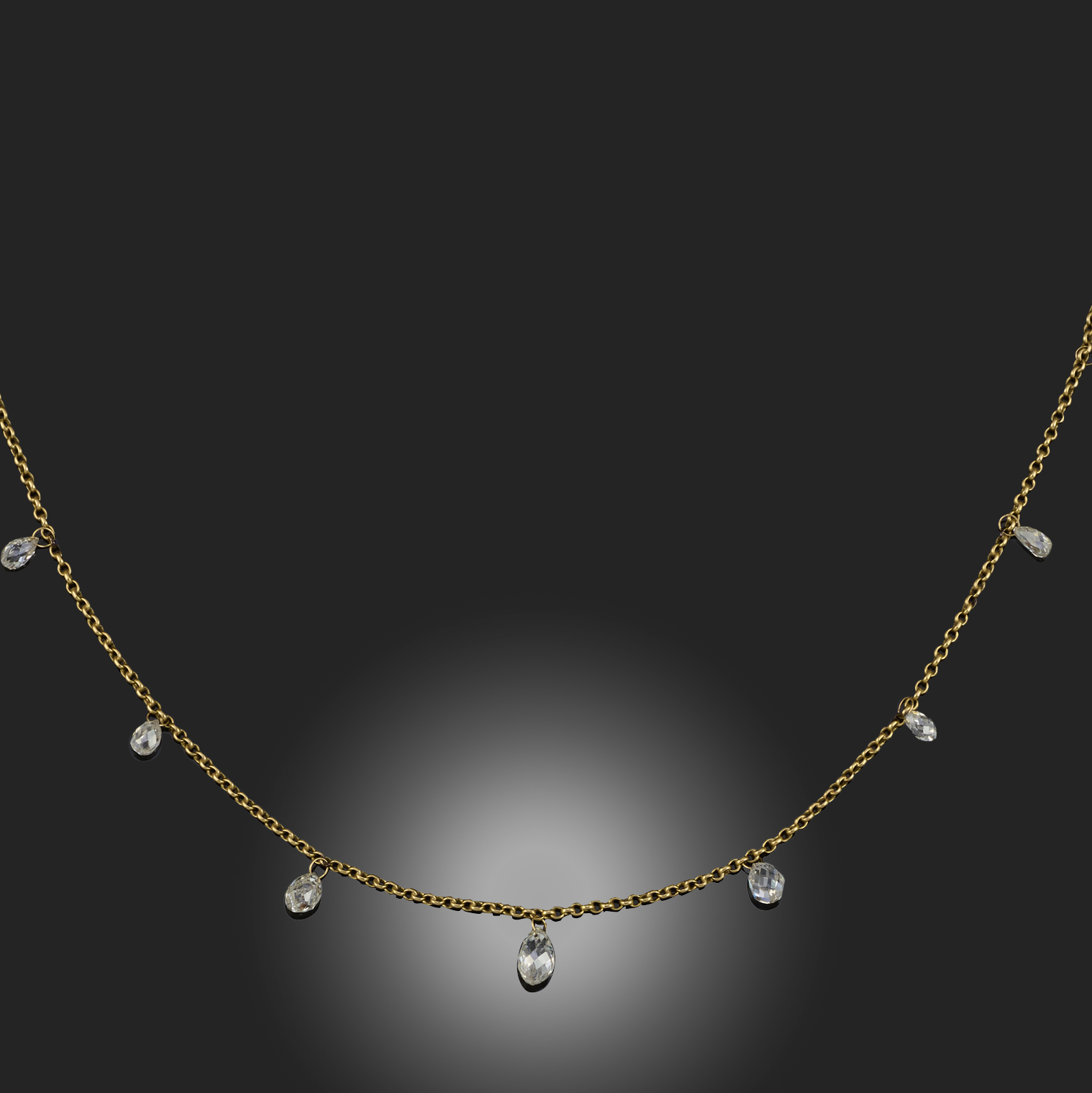 A DIAMOND NECKLACE, composed of eleven graduated briolette-cut diamonds, suspended from a circular-link yellow gold chain, total approximate diamond weight 4.00cts, chain length 46.5cm