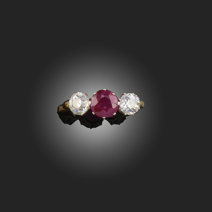 A RUBY AND DIAMOND THREE STONE RING