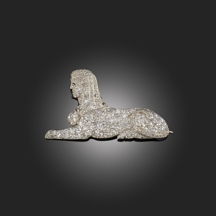 AN EARLY 20TH CENTURY DIAMOND-SET SPHYNX BROOCH