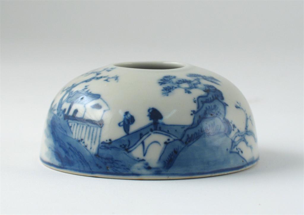 A Chinese blue and white beehive-shaped waterpot, Kangxi mark but 19th century, 9.5cm.
