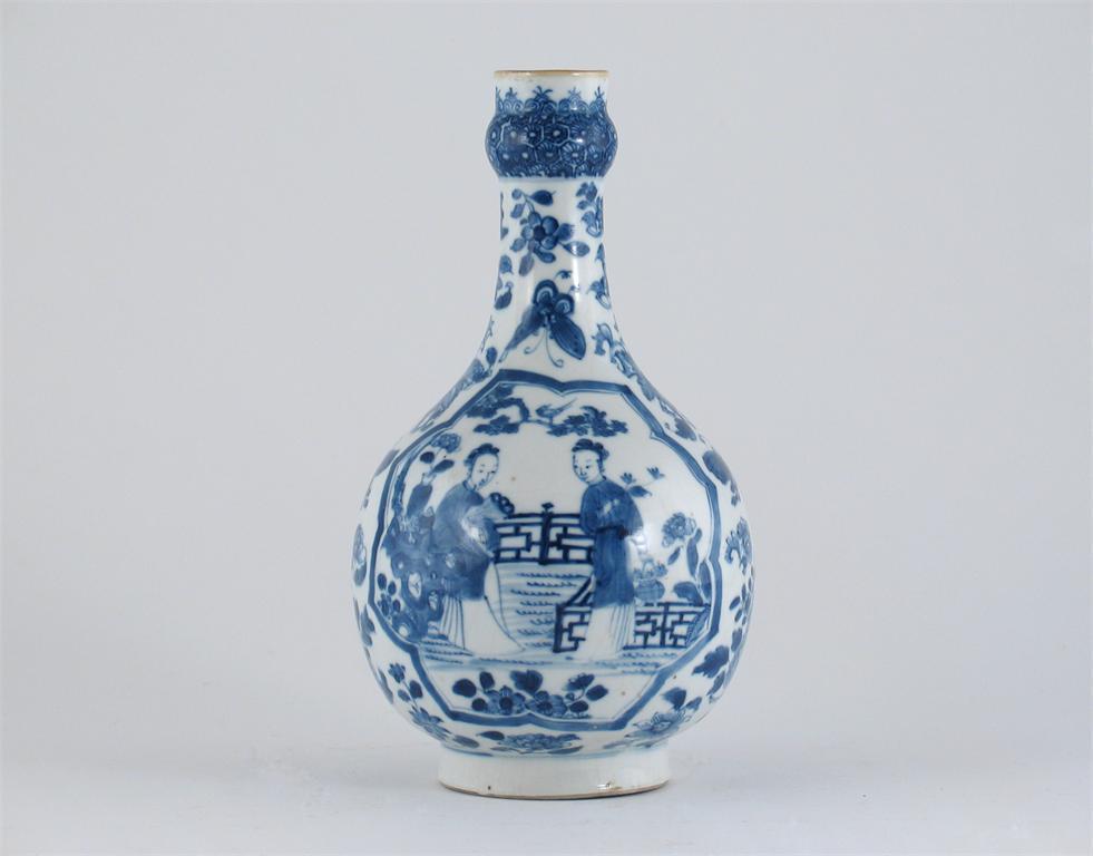 A Chinese blue and white guglet with a hua shih glaze, decorated with panels of figures, flowers and butterflies, 18th century, 24cm.