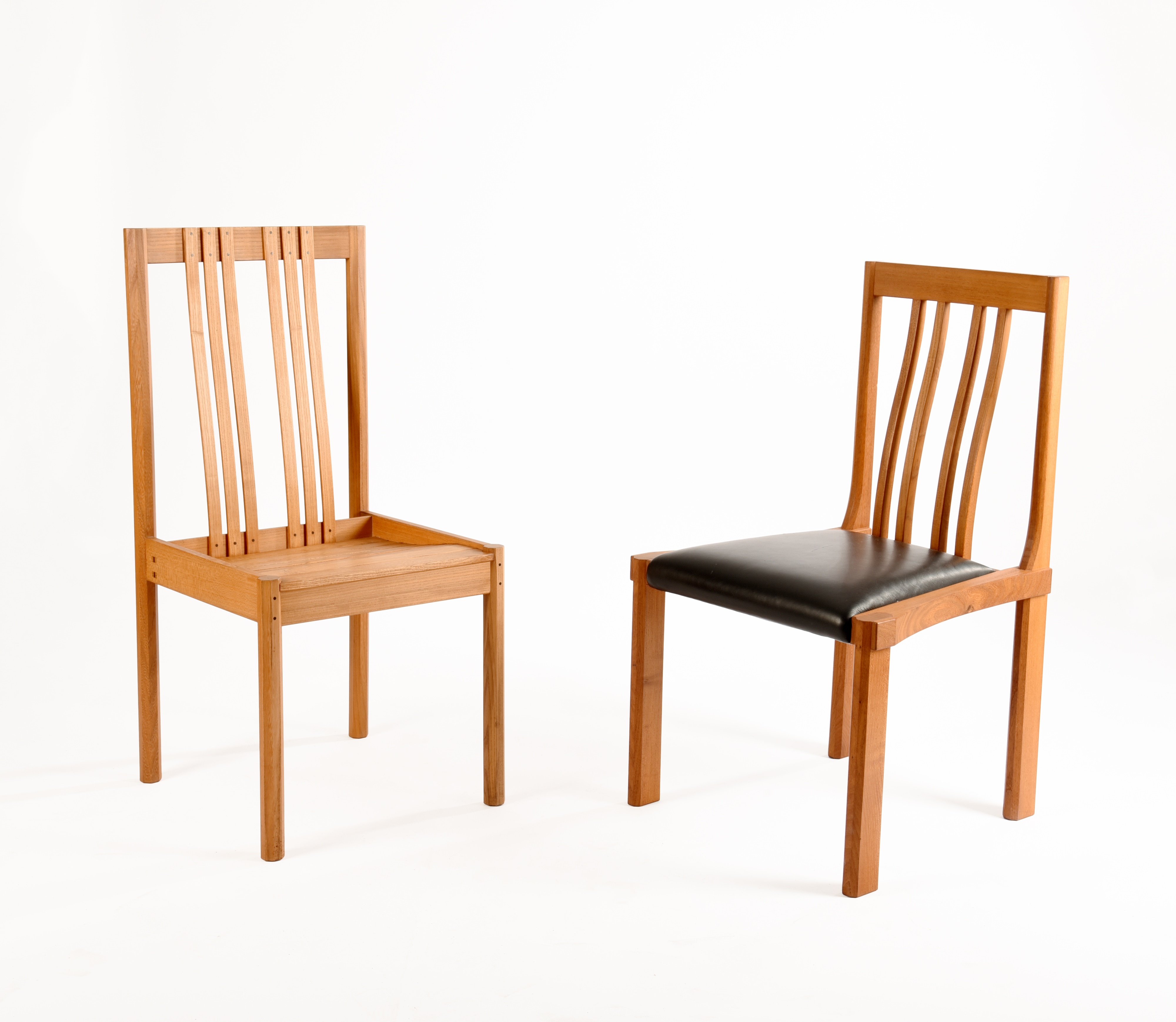 92cm high, 53cm wide; and a similar slatted elm and ash chair by Alan Peters (2).