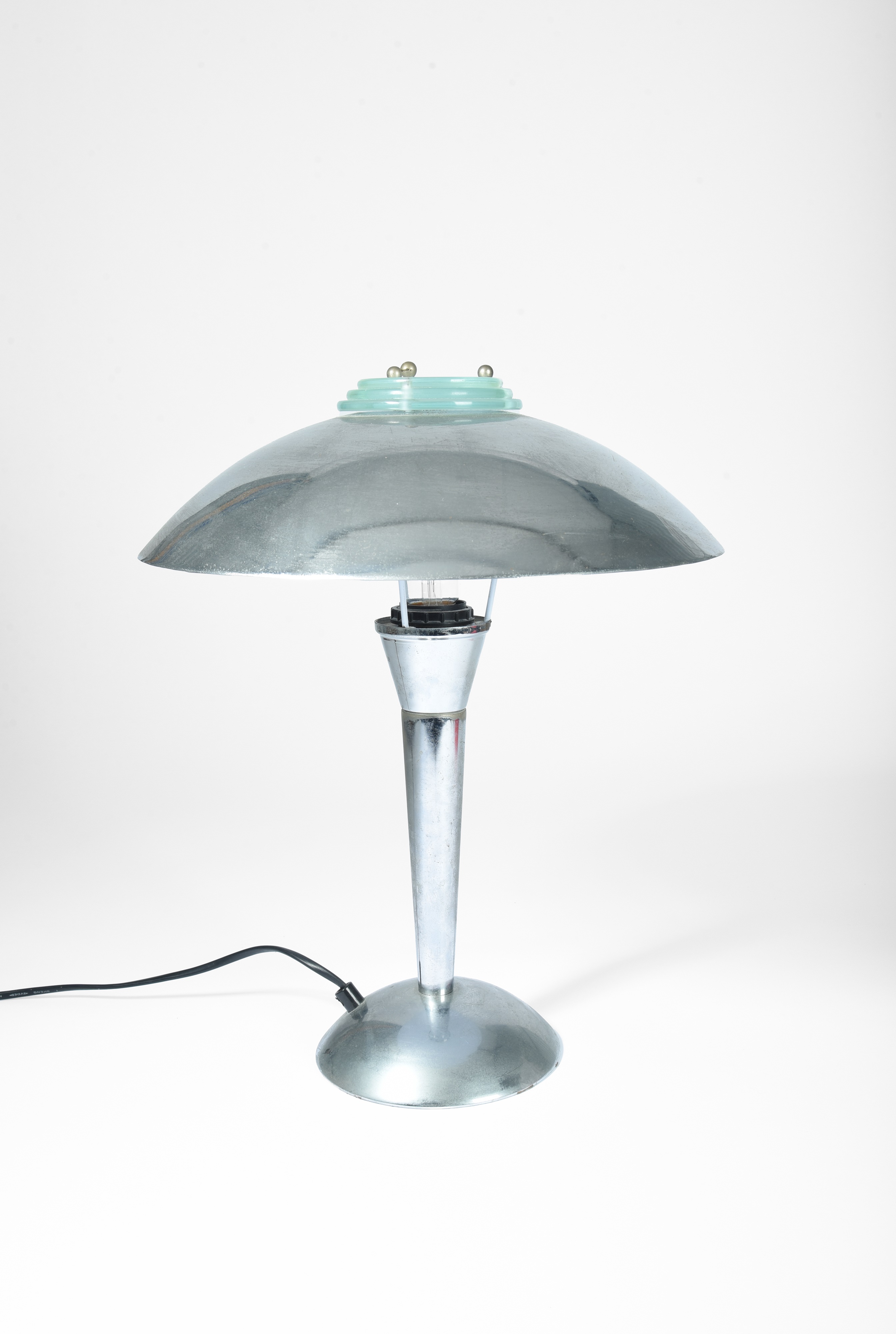 In the manner of Poul Hennigsen (1894-1967) A chrome and glass table lamp