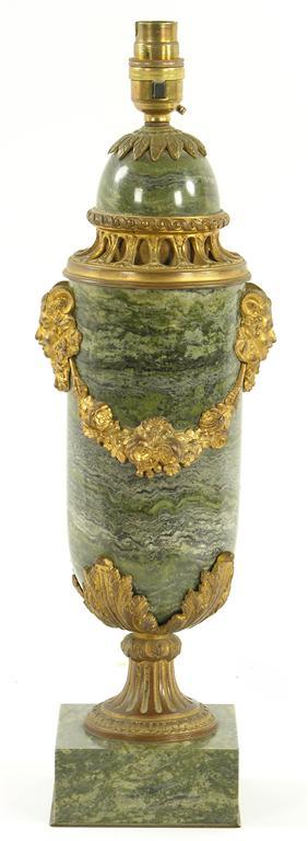 A French green marble and gilt brass mounted table lamp
