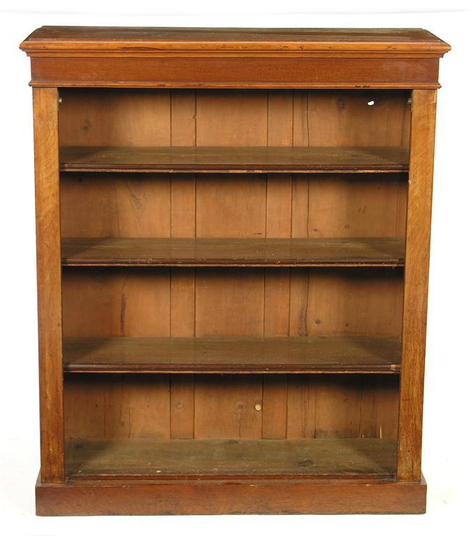 A Victorian mahogany open bookcase with adjustable shelves, 42in (106.5cm) h, 35.25in (89.5cm) w, 11.75in (30cm) d.