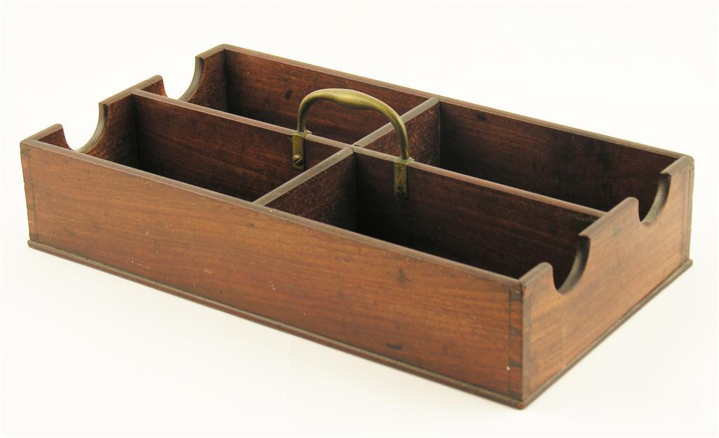A 19th century mahogany bottle carrier, with a brass carrying handle, 16.25in (41cm) l, 9in (23cm) w.
