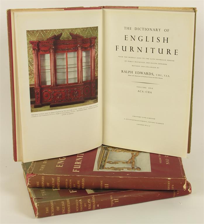 Macquoid (Percy) & Ralph Edwards. the Dictionary of English Furniture, second edition, 3 vols., original cloth, frayed and faded dust-wrappers, folio, [1954] (3)