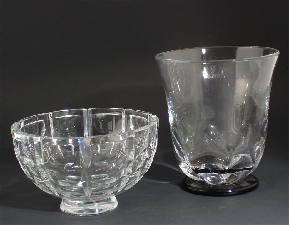 An Orrefors cut glass bowl a French cut glass vase and a collection of nine items of glass...