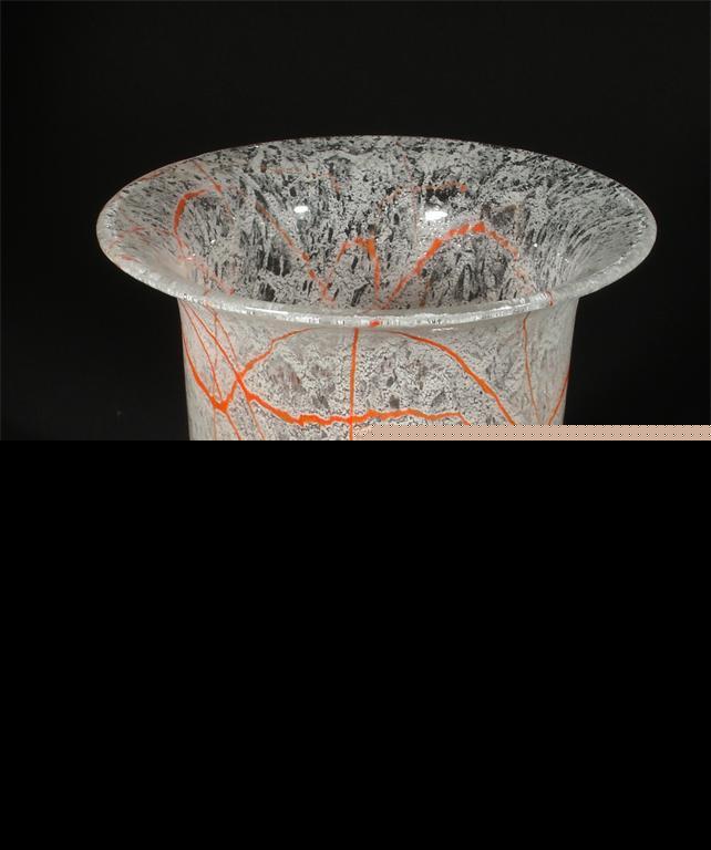 A Loezt Schaum glass vase clear glass internally decorated with white and red pigment abstract...
