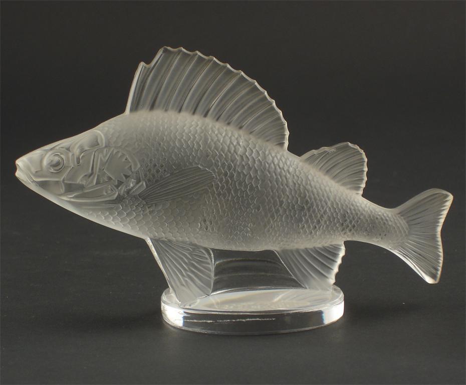 'Perche' a modern Lalique clear and frosted glass paperweight modelled as a carp etched Lalique...
