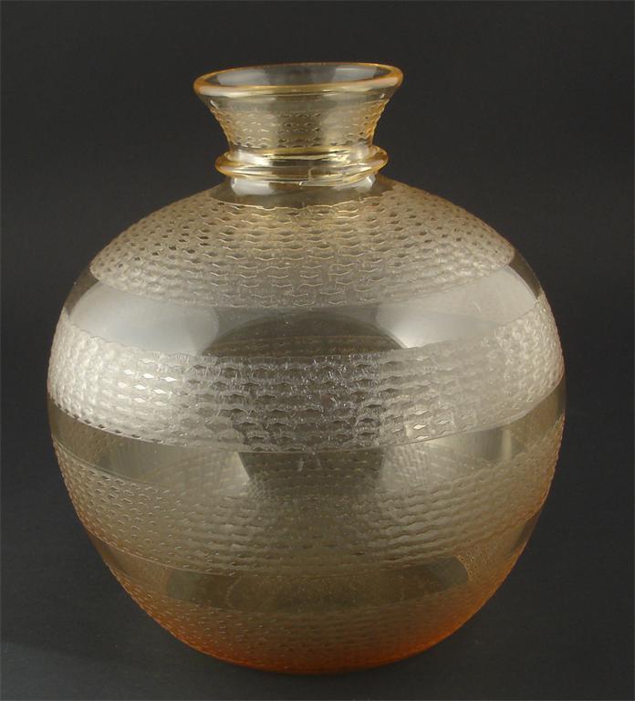 A Daum, Nancy Art Deco glass vase amber, ovoid form with acid etched bands of decoration etched Daum, Nancy France 25cm. high