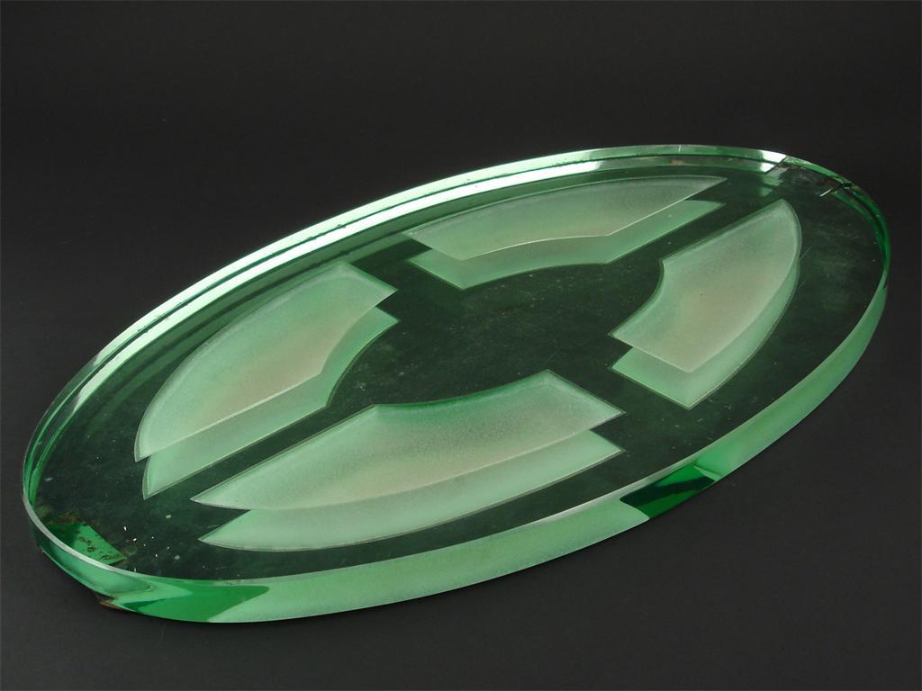 An Art Deco mirrored and frosted glass tray the design attributed to Jean Luce, elliptical form unsigned, minor nicks 54.5cm. wide