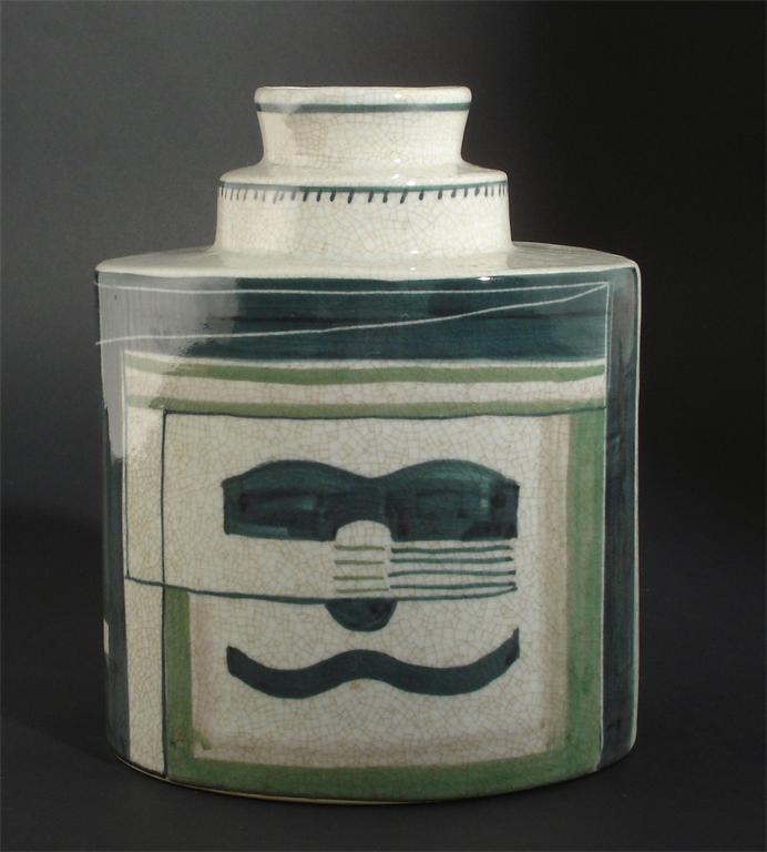 An Robert T. Lallemant Art Deco vase geometric decoration with stepped neck, painted mark T.R / Lallemant, 20cm. high