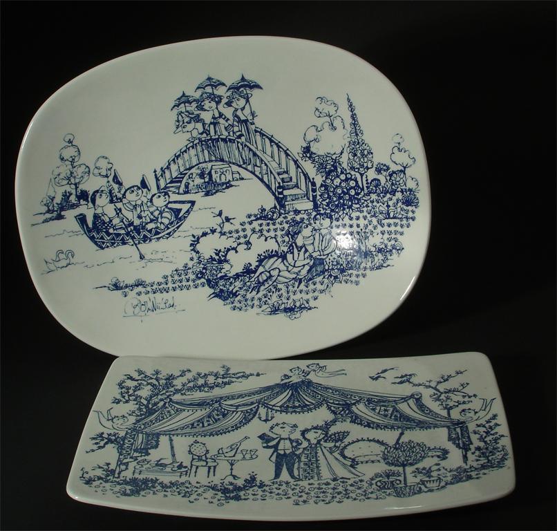 A Nymolle, Denmark platter 'Chambre Separee' designed by Bjorn Wiinblad, and another similar printed marks, facsimile signature 25.5cm. wide