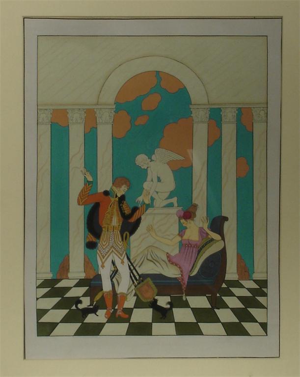 'L'Agression' a Barbier pochoir print framed 26.5 x 20.5cm. Literature George Barbier Art Deco...