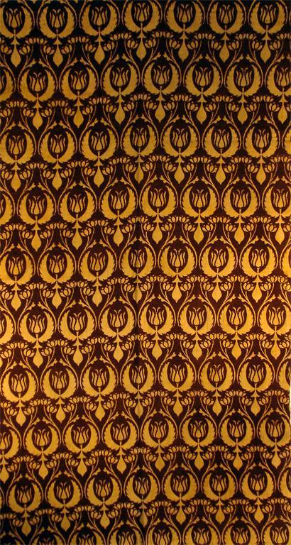 An English Arts and Crafts Portiere with repeat tulip design in brown unsigned 201 x 110cm.