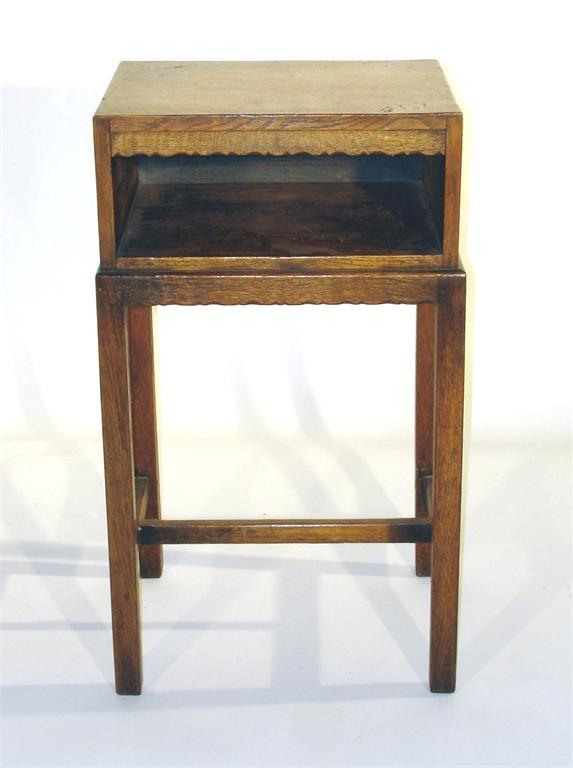 An Arts and Crafts oak bedside cabinet in the manner of the Costwold School unsigned 70.5cm. high