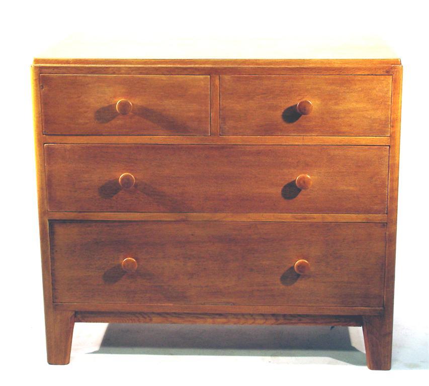 A Bath Cabinet makers oak chest of drawers, applied label, 83cm. high x 90cm. wide.