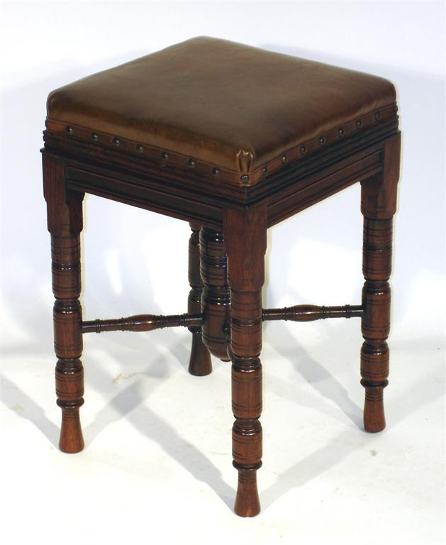 A Moorish rosewood piano stool with leather covered revolving seat unsigned 46cm. high