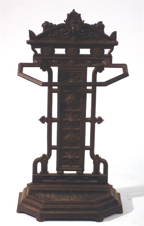 An Aesthetic Movement cast iron stick stand, with foliate panels, 76cm. high.