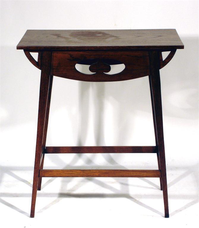 An Arts and Crafts oak side table rectangular top, with simple pierced stylised flower motif unsigned 69cm. high