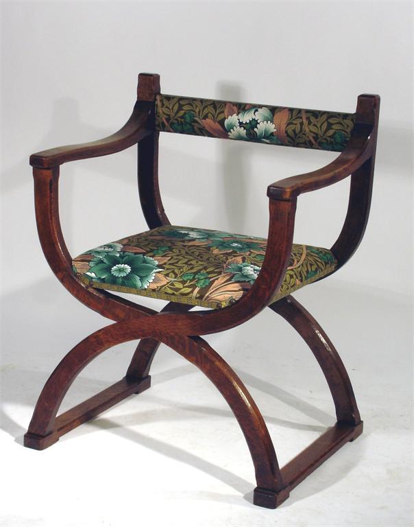 Four X framed chairs probably retailed by Liberty & Co