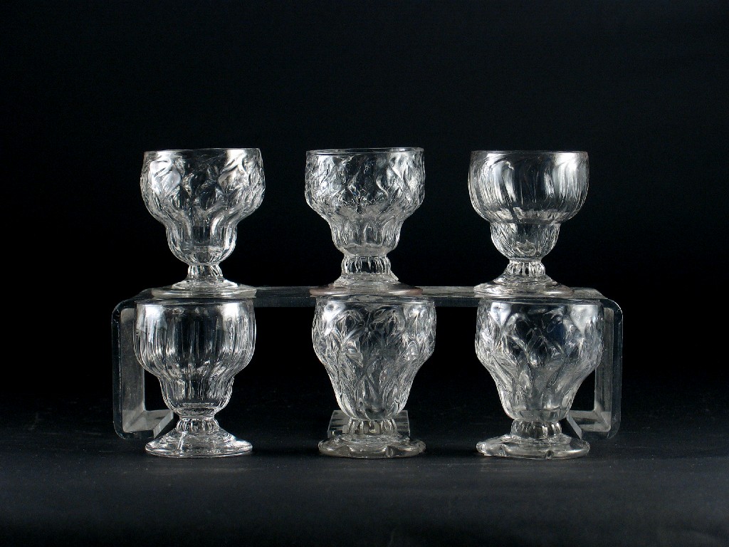 Six moulded jelly glasses, 18th century, 7.5cm. (6)