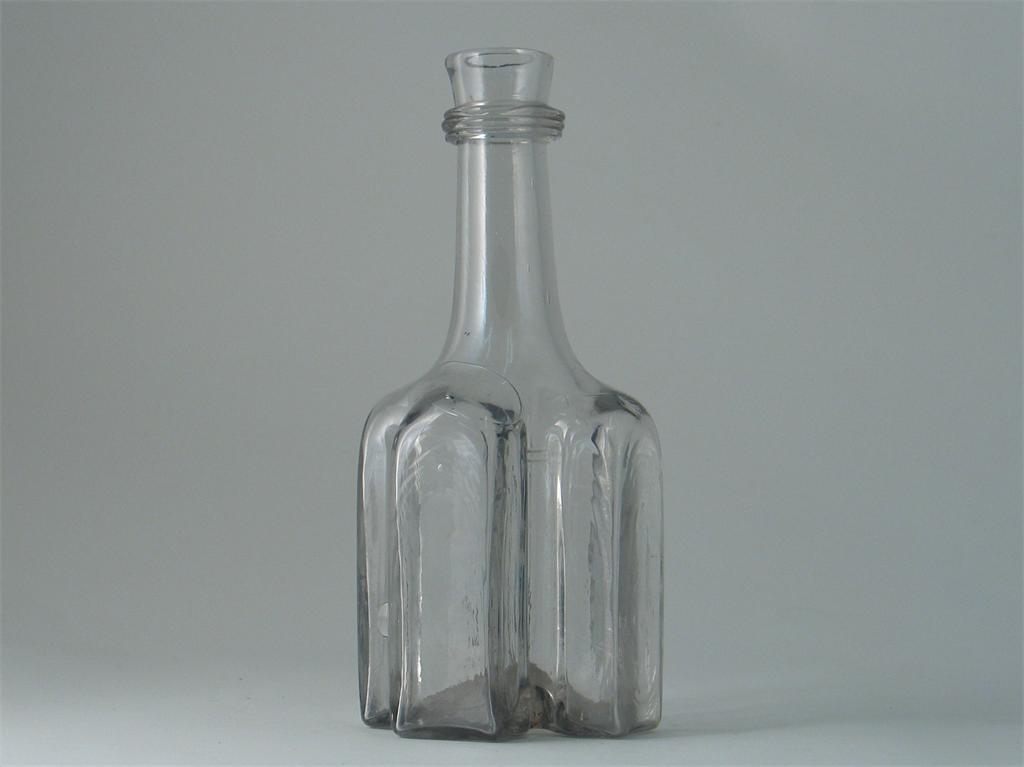 A rare cruciform decanter, the rim applied with a neck ring, 18th century, 21cm.