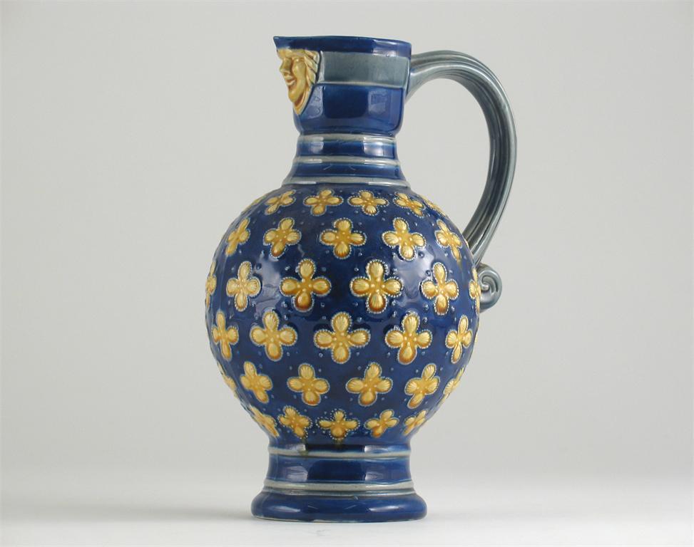 withdrawn forgery A Minton Majolica jug, simulating German stoneware, date code for 1871, 21cm.