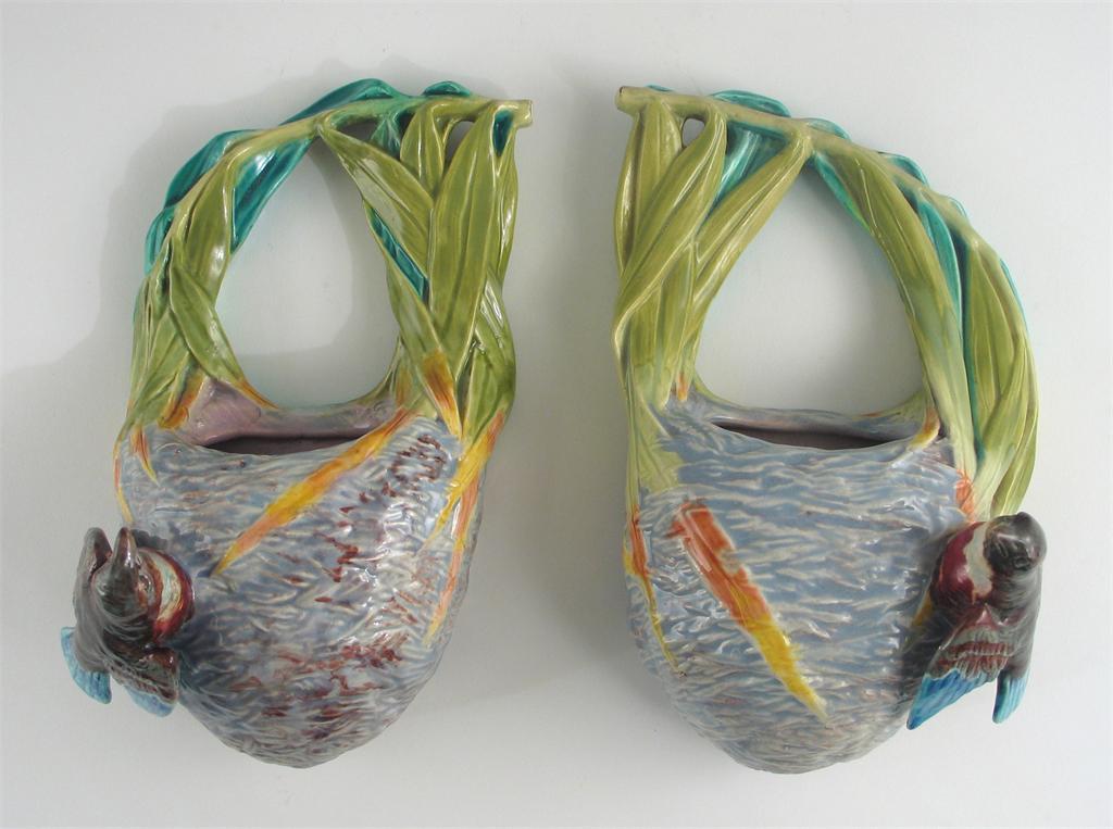 A pair of Royal Worcester Majolica wall pockets