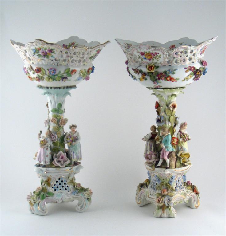 A large pair of Dresden centre pieces