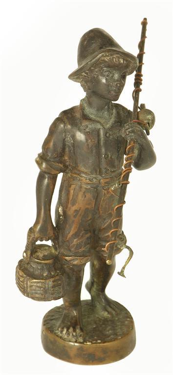 A small bronze figure of a fisherboy, the base inscribed B Cottomel 1891, 4.5in (11.5cm) h.
