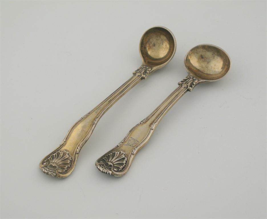 Kings Husk: a Victorian silvergilt salt spoon, crested, and a Victorian silvergilt mustard spoon, crested, both by George Adams, London, 1842 and 1848 respectively, 2.3oz. (2)