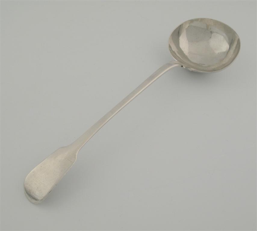 A 19th century Colonial fiddle pattern soup ladle maker's mark 'FW' and pseudo marks