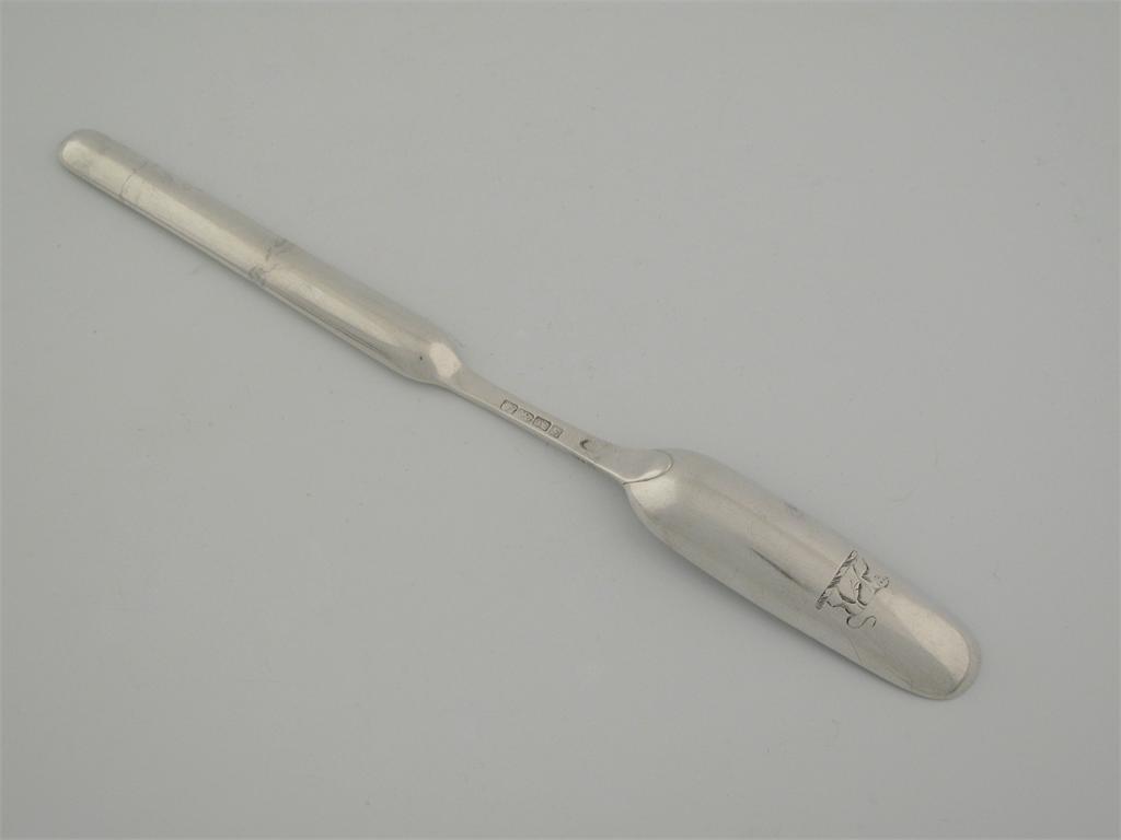 A George III Irish marrow scoop, crested, by Arthur Murphy, Dublin 1808, 9.25in (23.5cm) long, 1.5oz.