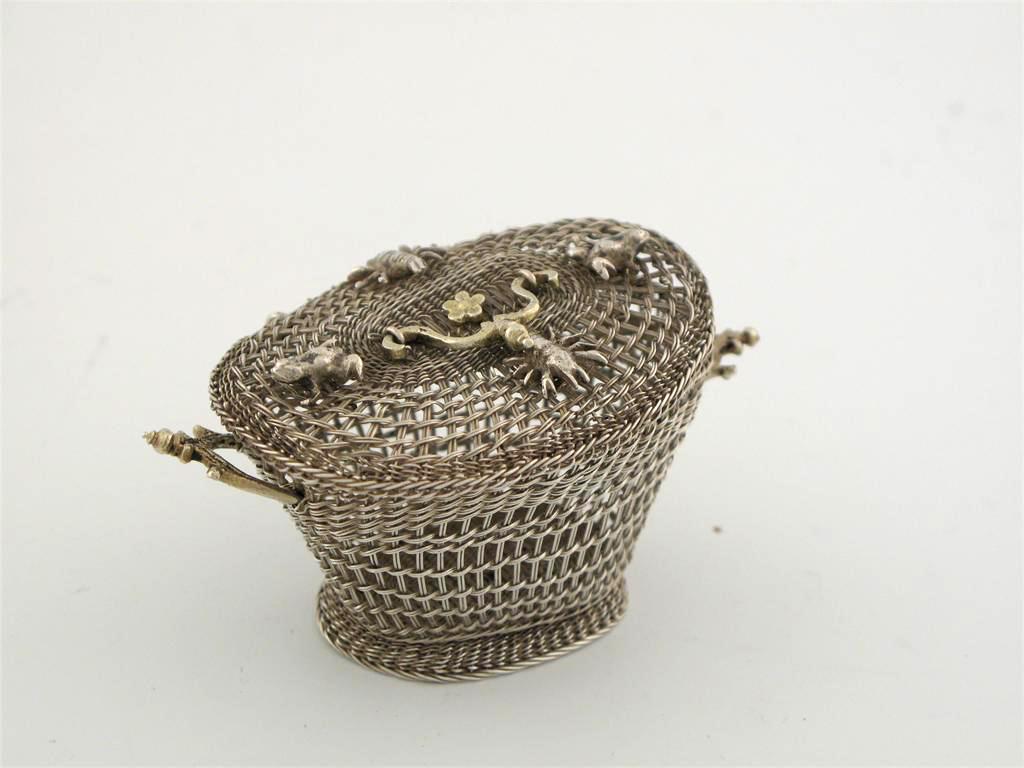 An unusual parcel-gilt, wire-work creel, with applied cast crustaceans, 18th/early 19th century, unmarked.