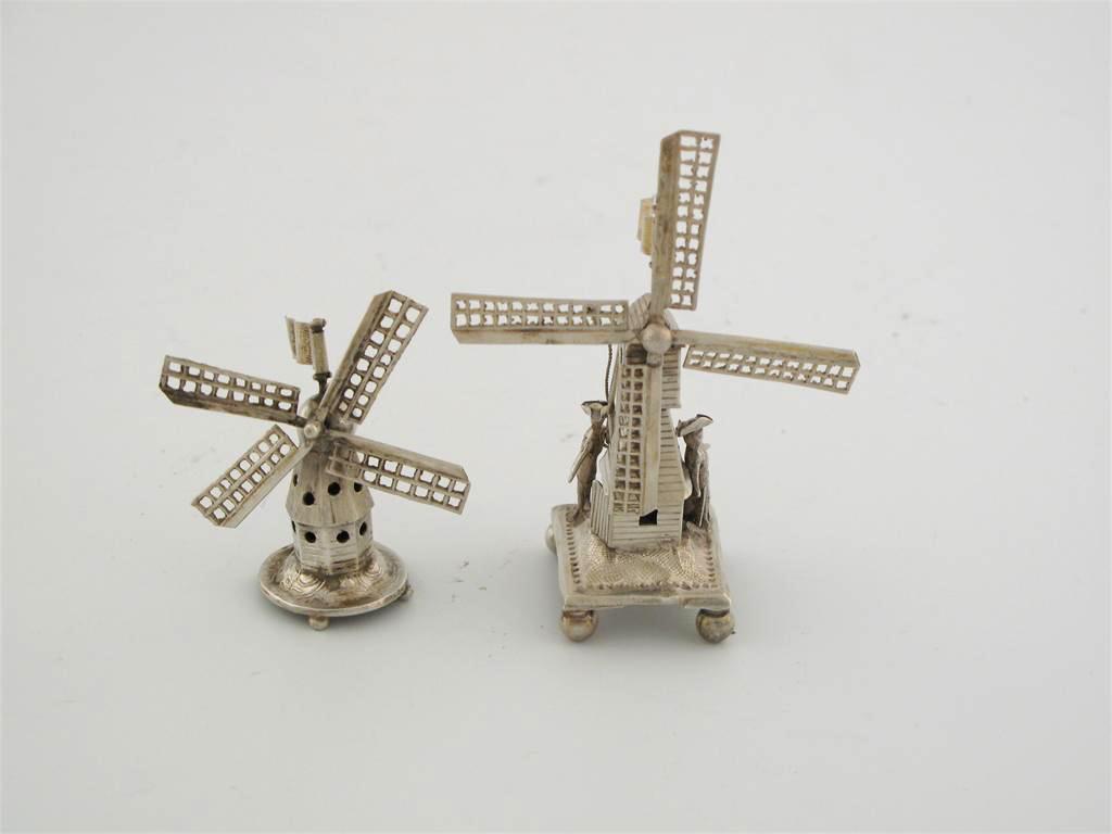 Two windmills with pierced rotating sails, the tallest 3.25in (8.5cm) high. (2)