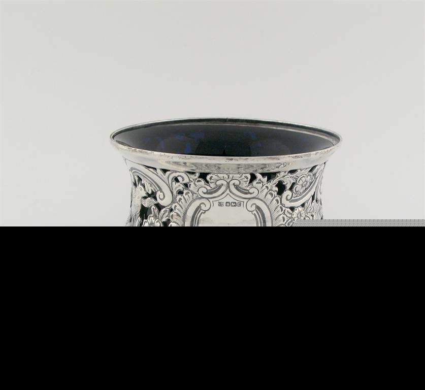 An Edwardian dish ring of continental spool form pierced and embossed with birds and animals amongst floral scrolls, with two vacant cartouches, maker 'F. Bros LTD.', Sheffield 1909, 7.9in (20cm) diameter, 11.5oz weighable silver.