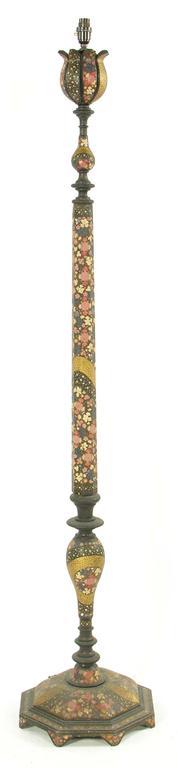 A Kashmir turned and floral painted standard lamp, 66in (167.5cm) h.