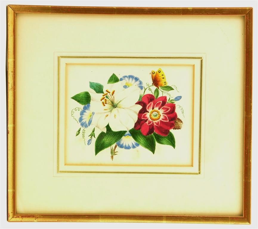 Five botanical watercolours, three with initials ' G. J.', in glazed gilt frames, 5 x 6.5in (12.4 x 15.5cm). (5)