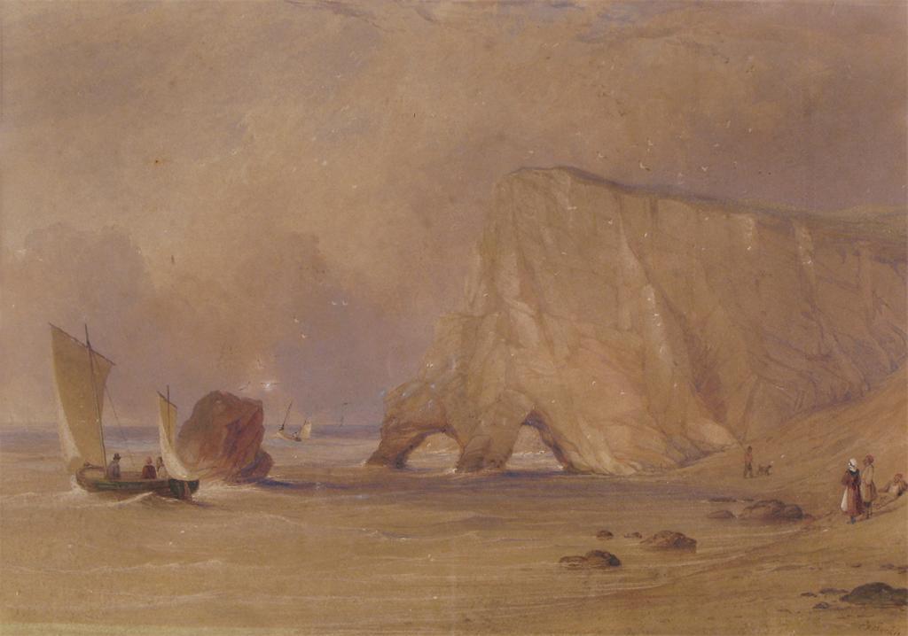 Charles Frederick Buckley (1912-1869) Beach scene with figures and boats near cliffs Signed ...