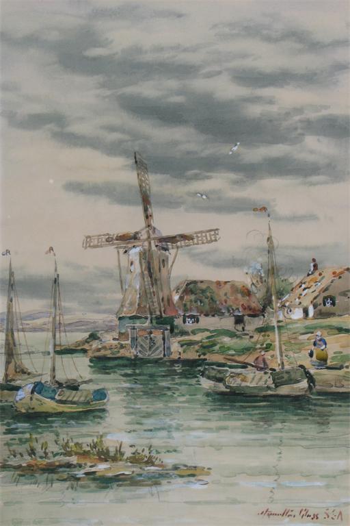 Hamilton James Glass (1820-1885) Dutch river scene with a windmill Signed Watercolour 34.5 x...