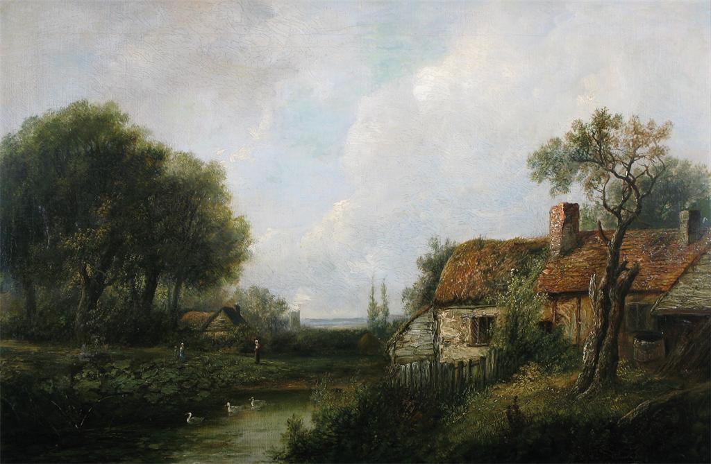 Joseph Thors (c. 1843-1898) Cottages by a river in a wooded landscape Signed Oil on canvas 40...