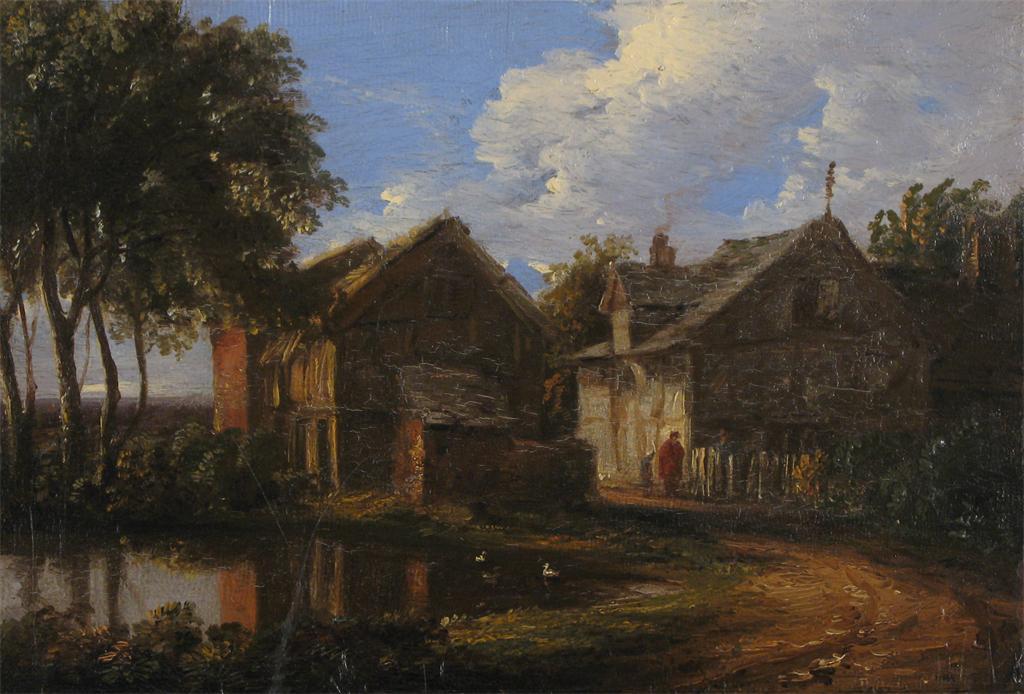 Follower of John Crome View of a farm Oil on panel 24 x 34cm; 9 x 13in Together with another...
