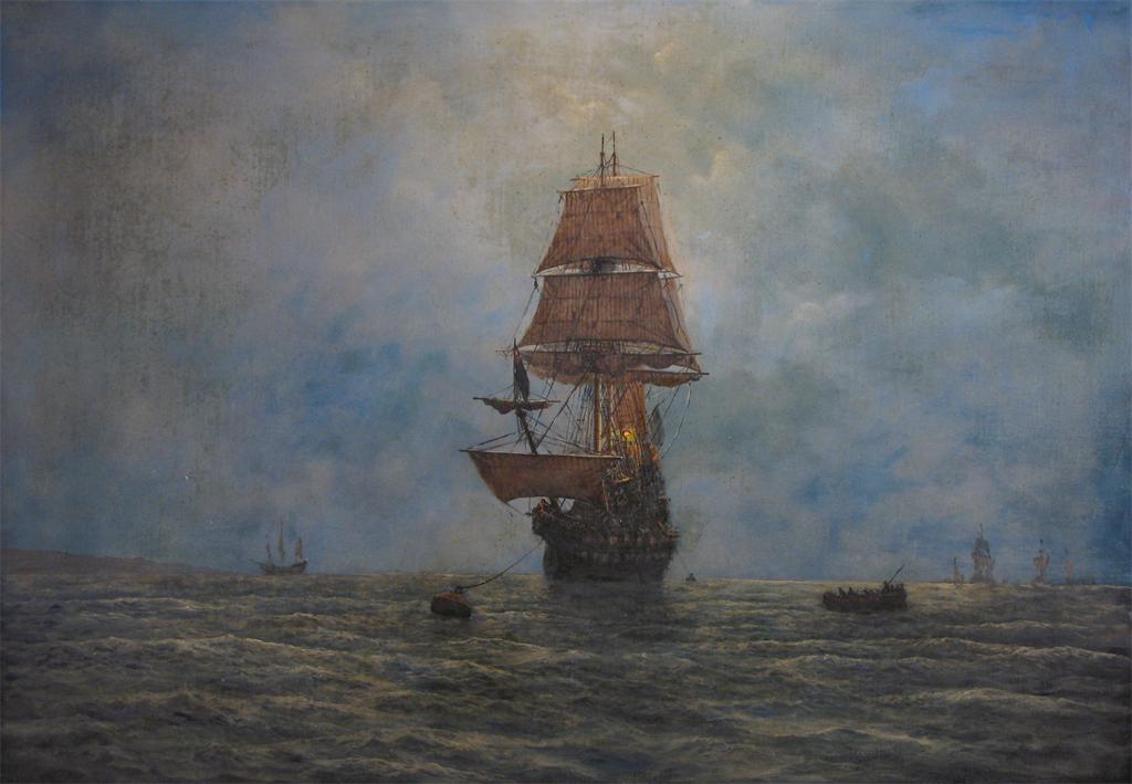 Graham Hedges (b. 1952) Moonlit Man 0'War at anchor Signed Oil on canvas 70 x 100cm; 27 x 39in