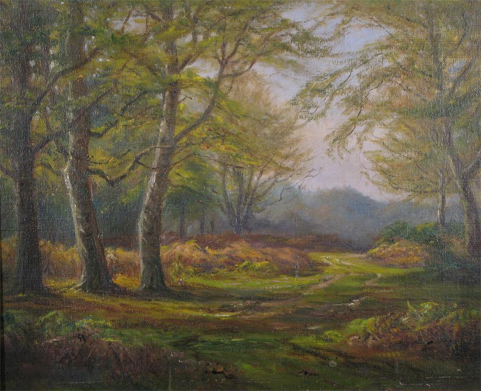 Frederick Golden Short (1863-1936) Autumn afternoon, New Forest Signed Oil on canvas board 23 x 28cm; 9 x 11in