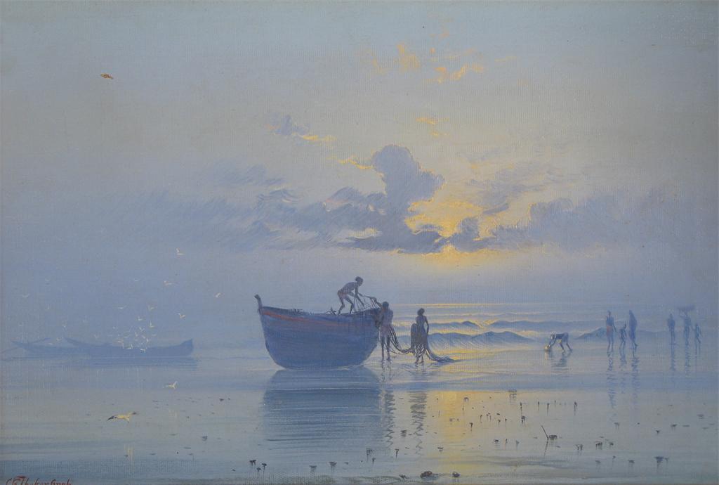 Sardar Ganda Thakar Singh (Indian 1899-1976) Fisherfolk on the shore Signed Oil on canvas 35...