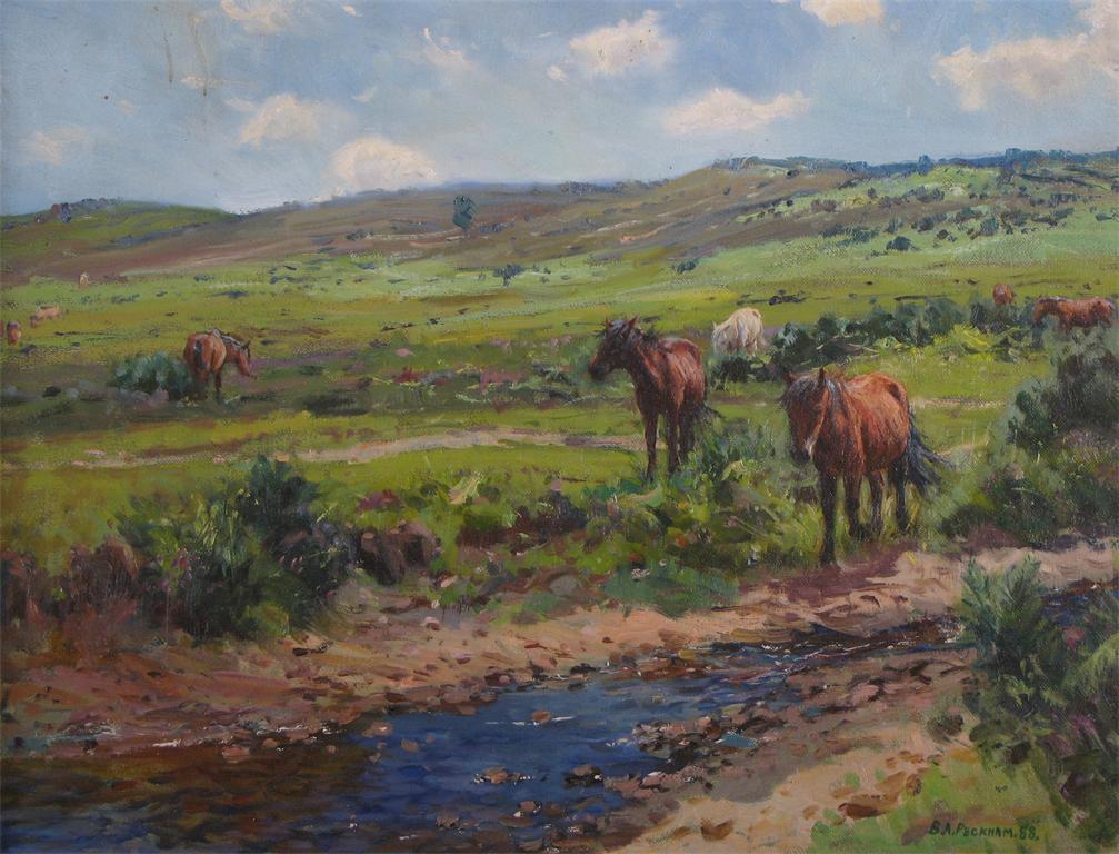 Barry A. Peckham (b. 1945) Ponies in the New Forest Signed and dated 88 Oil on canvas 34 x...