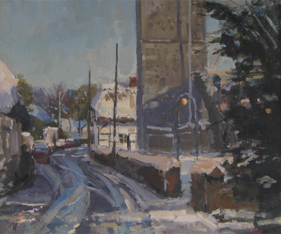 ^ Mary Jackson (b. 1936) Winter in St. Mary Bourne Signed with initials Oil on canvas 24.5 x...