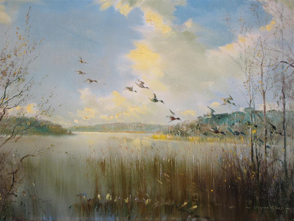 Vernon Ward (1905-1985) Mallard in flight over Sowley Pond
